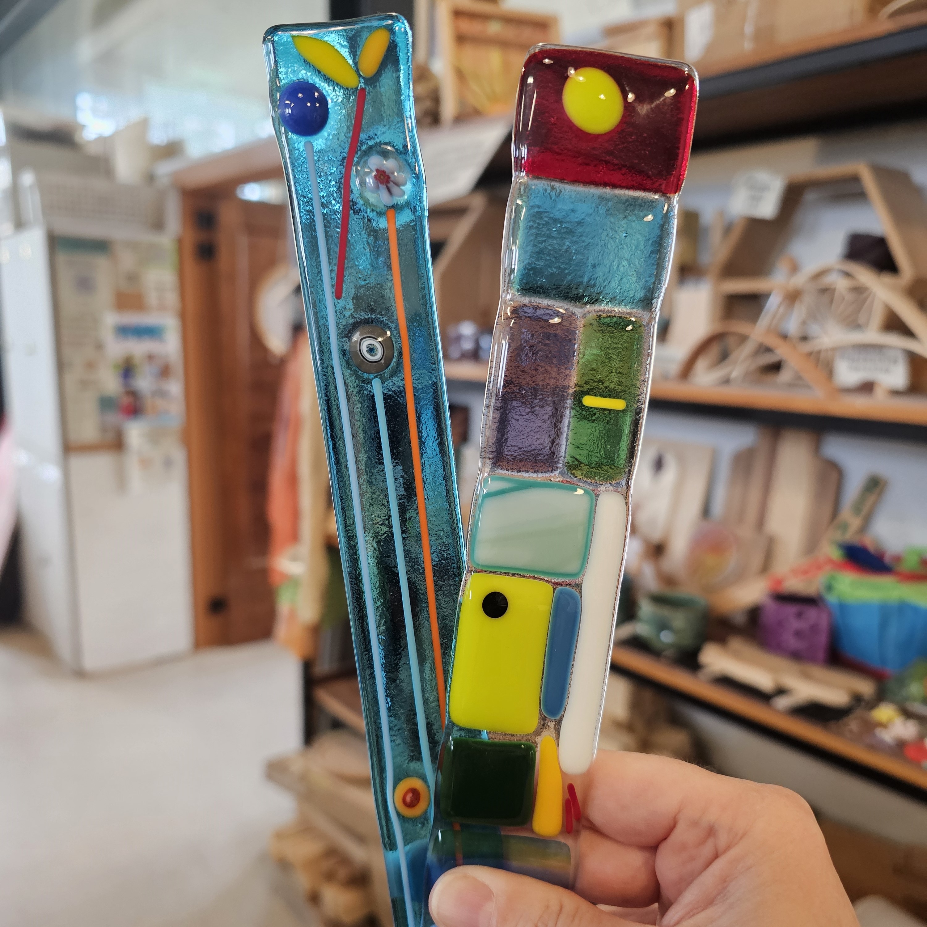 Glass Arts | Fused Glass: Garden & Window Art Workshop$105.00 Select a date from the drop-down menu. The seasons are changing, and it’s a beautiful time of year to celebrate by creating whimsical fused glass art for your garden or windows! Your bright and cheerful sun catchers and garden sticks will make your garden, indoor potted plants, or windows sparkle! Instructor Suzanne Balestri will guide you in glass cutting techniques an design considerations to create your own artful creations to compliment your garden or to display in a sunny window. You will also receive two instructional videos a few days before the workshop so you’ll have a head start on what to expect. Students can make up to 3 pieces measuring approximately 1.5” x 11” each. All glass art will be kiln-fired after class and ready for pick up at Craft Collective approximately 2-3 weeks after class. All materials are included, including 2 pre-class video instructions, and materials and firing for 3 glass pieces. Additional pieces can be made in class for $5 each (payable with cash in class). Materials fee of $10 (cash only) to be paid to the instructor at the start of the class. Beginners welcome. Ages 13+ years, or 8+ years with adult. • Military, first responders and sibling discounts: Email us for more information. • Scholarships available: Click here for an application. • Homeschool funds accepted: Click here for enrollment details. • If this class is full, join the Interest List to be notified. • If you would like to be notified of future offerings, join the Interest List to be notified when new dates or spaces are available. Choose Your Date Choose an optionMar 22, 2-4:30pmApr 26, 2-4:30pm Student's Age Choose an option8 with adult9 with adult10 with adult11 with adult12 with adult131415161718+Clear Glass Arts | Fused Glass: Garden & Window Art Workshop quantity Add to cart Categories: Adult Classes, Adult-Child Classes, Teen Classes Tags: craft, fused glass, handmade, kids Description Reviews (0) Description Glass Arts | Fused Glass: Garden & Window Art Workshop Select a date from the drop-down menu. Materials fee: $10 (cash) to be paid to instructor at the start of the workshop San Diego Craft Collective, 2590 Truxtun Rd., Studio 106, SD 92106 • 619.273.3235 • make@sandiegocraft.org This course is held outdoors, so we suggest: • Dress in layers, bring a jacket, hat, apply sunscreen (if needed) so you can adjust to the weather. • Bring water/beverage if you need to be comfortable. • Bring an apron or wear comfortable clothes that can get messy. • Wear closed-toe shoes. Dropping glass on feet hurts! DIRECTIONS: Located in Liberty Station’s Arts District, you can find our studio at the end of the hallway on the 1st floor of the Dorothea Laub Music & Arts Center (Bldg 176) at the corner of Roosevelt & Truxtun, next to The Lot movie theater. There is plenty of free parking. Parking Lot Q is behind our studio — enter via the driveway off Dewey. Across the street in the Vons parking lot, it is also free. If you can’t find us, call or text 619.273.3235. CLASS SIZE: 3 min. If the minimum is not met, you will receive a full refund or credit toward another class. REFUNDS: No refunds for tardiness or no-shows. For a refund (minus a 5% processing fee), you must cancel 7 days before the start of the class. After 7 days, we cannot offer refunds, as materials and supplies have already been purchased. TRANSFERS: You may transfer your enrollment spot to someone else, but transfers must happen before the workshop begins. Please email us to let us know who’s coming. INTEREST LIST: If a class is full or you would like to be notified of future offerings, join our Interest List to be notified when new dates or spaces are available. ABOUT THE INSTRUCTOR: A native Californian, Suzanne Balestri was an interior designer when she first began her explorations with kiln-formed (or “fused”) glass. After taking a glass workshop for fun in 2006, it didn’t take long for her passion for the medium to ignite. Before she knew it, she was selling her work in over 50 boutiques and galleries across the country. Suzanne later shifted her focus to concentrate on personal artistic endeavors, and in 2017 began teaching the medium through various local art institutions and corporate team-building events. Suzanne’s style demonstrates a “powerful grace” influenced by her dedication to yoga and whole wellness, while her interior design background has refined her eye for color arrangement and clean design. “Melding a classic process with a modern touch rejuvenates my soul. When I work with glass to transform it into art, I step into a haven for nurturing and creative expression.” Suzanne graduated from San Diego State University with a BS in Marketing; minor in Advertising. She also received her BFA at Design Institute of San Diego. Reviews There are no reviews yet. Be the first to review “Glass Arts | Fused Glass: Garden & Window Art Workshop”Your email address will not be published. Required fields are marked *Your rating * Rate… Perfect Good Average Not that bad Very poor Your review *Name * Email * You may also like… Fiber Arts | Weaving: Learn to Warp + Weave on a Rigid Heddle LoomRated 5.00 out of 5 $220.00 Select options This product has multiple variants. The options may be chosen on the product page Glass Arts | Fused Glass: Wall Pocket Vase Read more Glass Arts | Fused Glass: Jewelry & More Read more Glass Arts | 7-Week Leaded Stained Glass $550.00 Select options This product has multiple variants. The options may be chosen on the product page Gift CardRated 5.00 out of 5 $15.00 – $500.00Price range: $15.00 through $500.00 Select amount This product has multiple variants. The options may be chosen on the product page Woodworking | Scroll Saw Skills & Intarsia $150.00 Select options This product has multiple variants. The options may be chosen on the product page Fiber Arts | Natural Dye: Intr